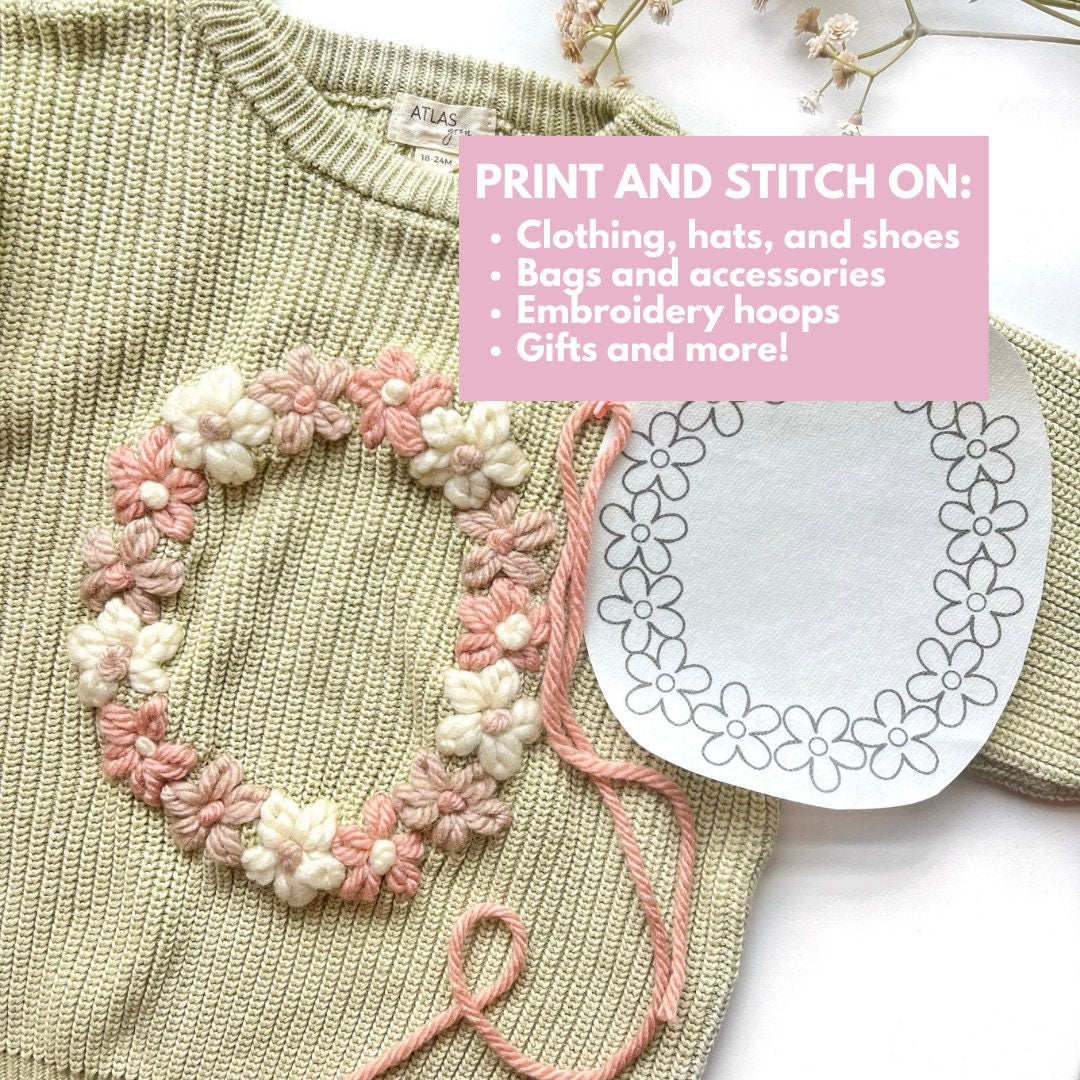Printable embroidery PDF images of my 6.5 inch floral letters for DIY Baby Sweaters. (BUNDLE: Comes with all 26 letters of the alphabet!) All you need to do is download it, print the pages on water soluble stabilizer, cut out the design, stick it onto your sweater, and embroider!