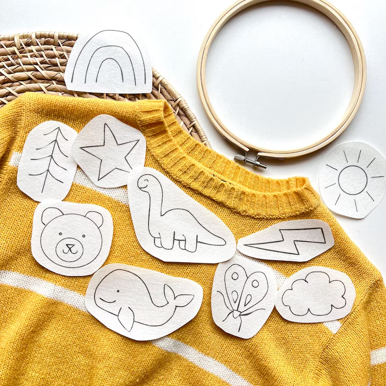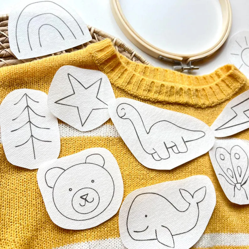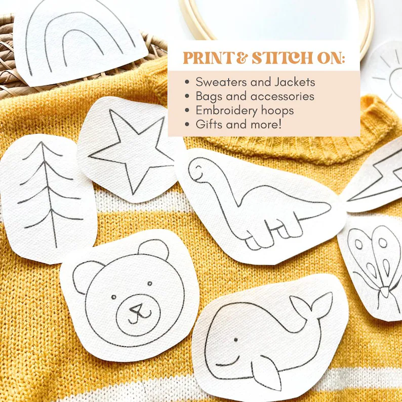 - Downloadable Image Sheet of the boy baby/kids nature stick and stitch designs (PDF is 8.5x11inches, but it can be resized in your printer settings)
