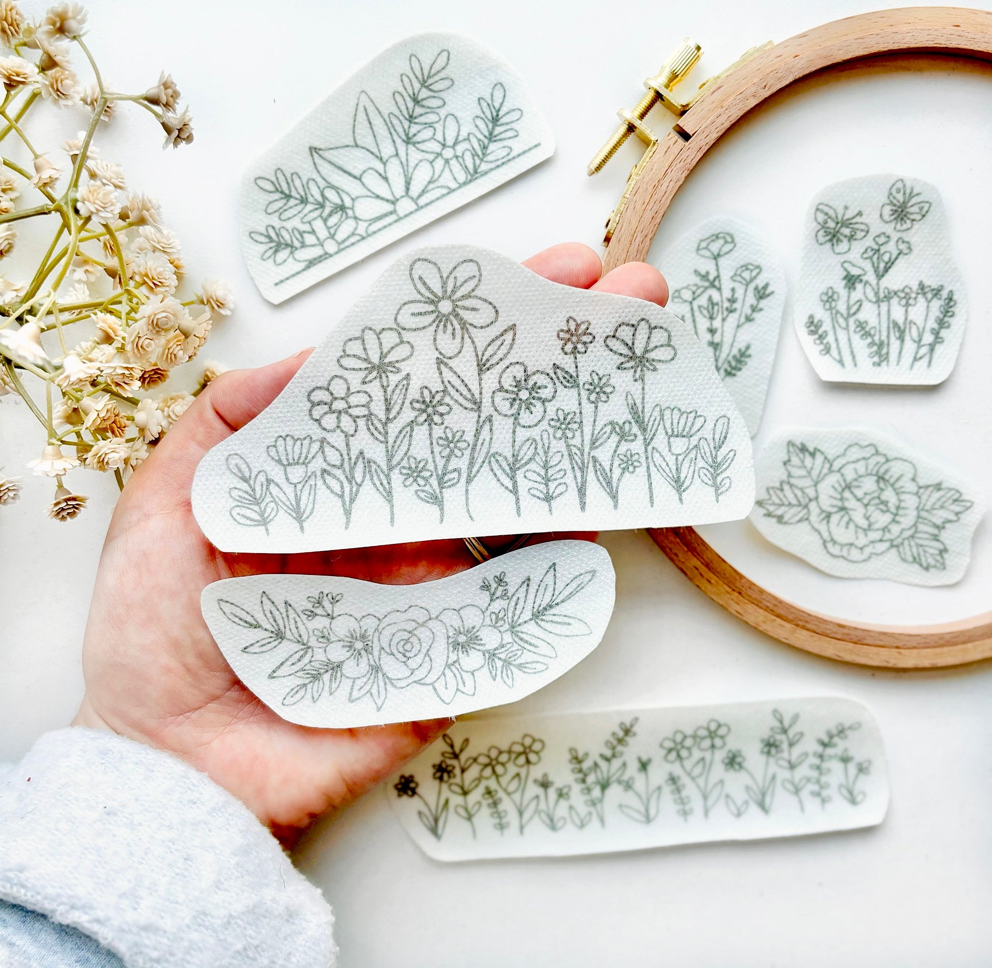Elevate your hand embroidery projects with these wildflower stick and stitch patterns! Pre-printed on water-soluble stabilizer, these easy-to-use designs let you embroider floral patterns onto clothing, accessories, and fabric projects with precision. Simply stick, stitch, rinse, and reveal your beautiful embroidery!
